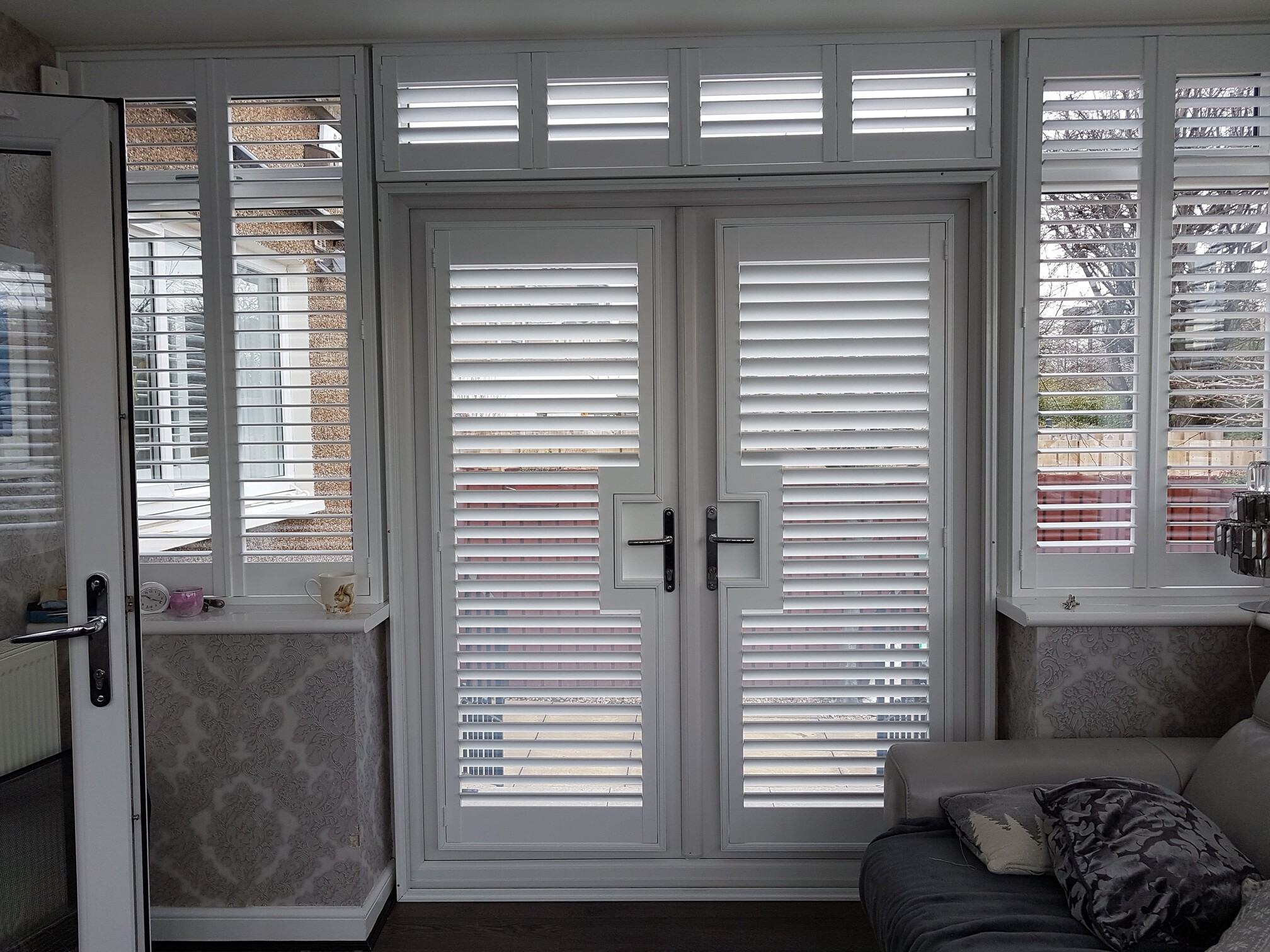 Our stylish range of made-to-measure door shutters can be engineered to fit just about any door to provide a shutter solution for French Door Shutters, Patio Door Shutters and Bi-Fold Door Shutters. Our Door Shutters will still open in the same manner as our window shutters, as they are hinged to the frame. As well as the more traditional French Door and Patio Door shutters styles, our shutters are also perfect for Bi-Fold doors too due to their aesthetic appeal, practicality and versatility of applications they fit.