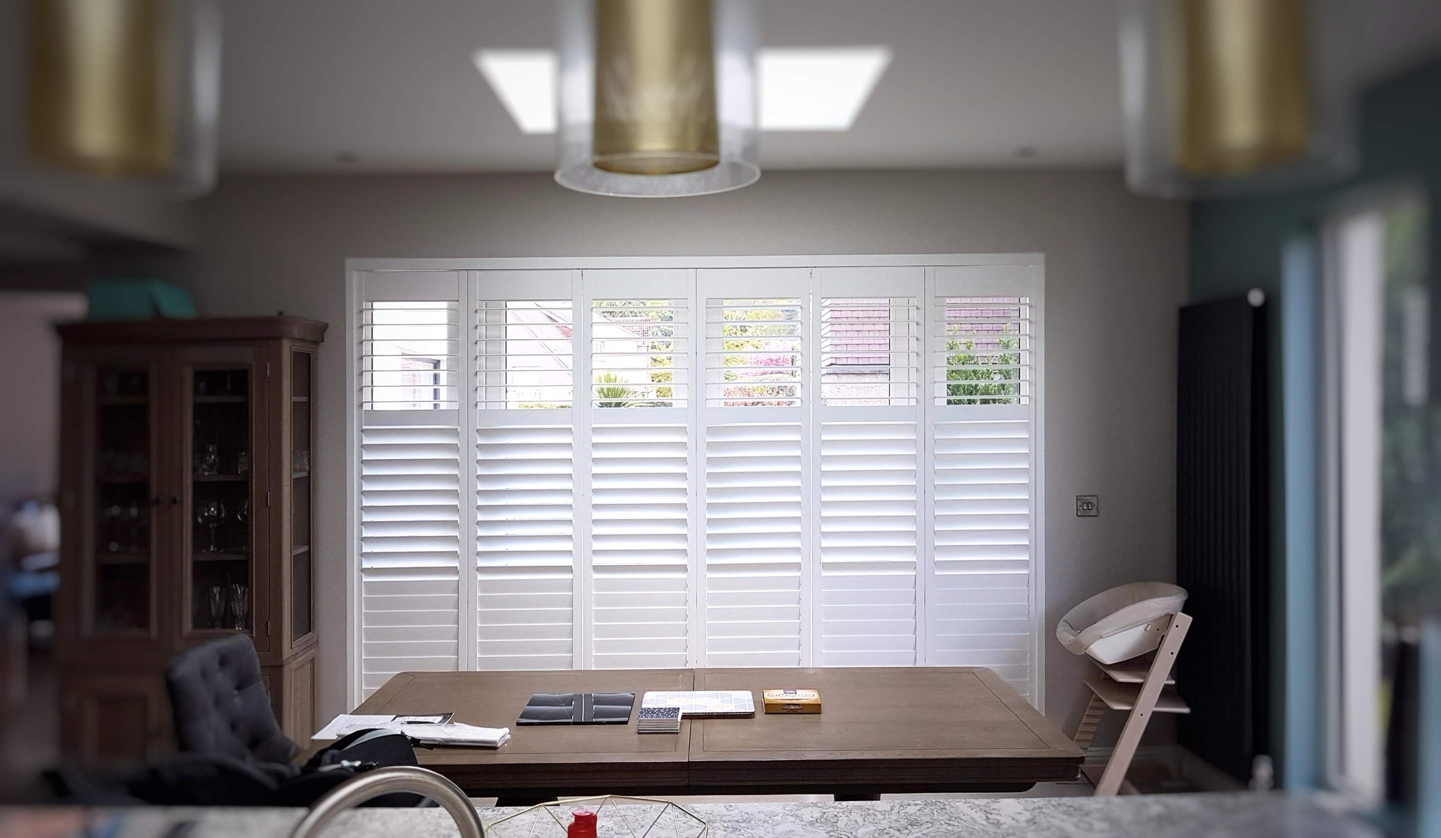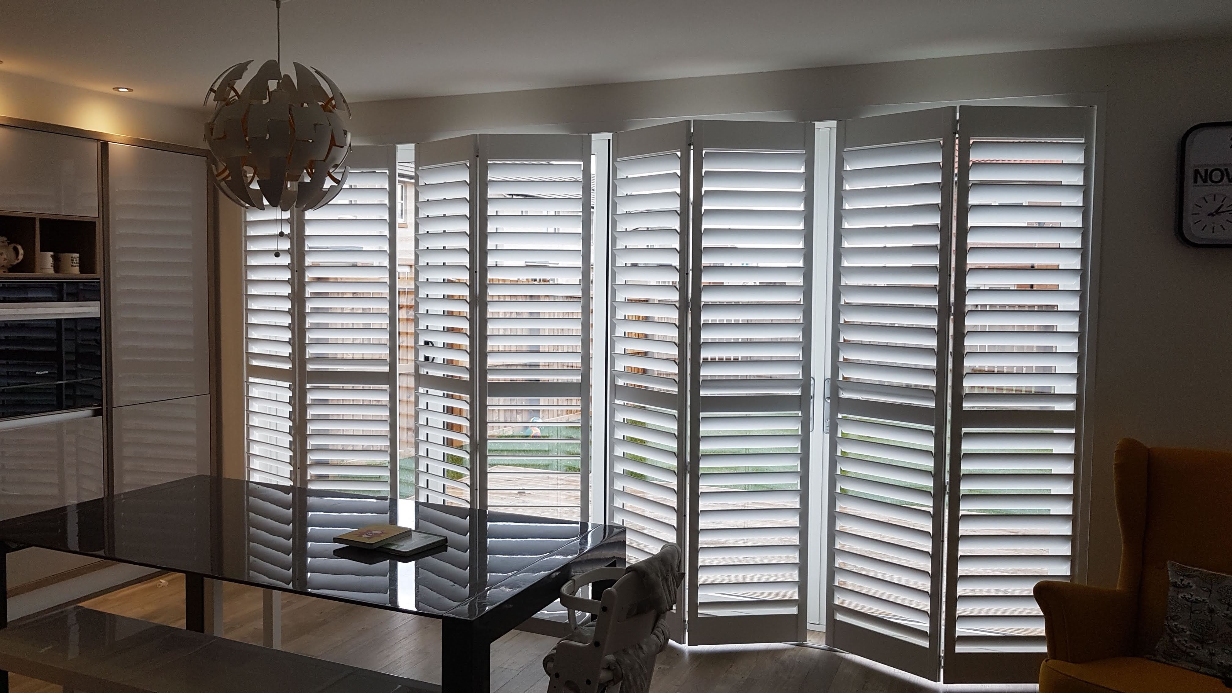 Our track shutters are available in 2 main track systems, Bi-Fold and By-Pass, to provide an enormous amount of options, configurations and flexibility. Bi-Fold Shutters simply concertina together as you draw the panels along the tracks. Our Bi-Fold Shutters utilise hinges to fix multiple shutter panels together. These look fantastic when in situ and should you wish to open your shutters, to access your window or patio door, each panel group will concertina together to the left and/ or right.